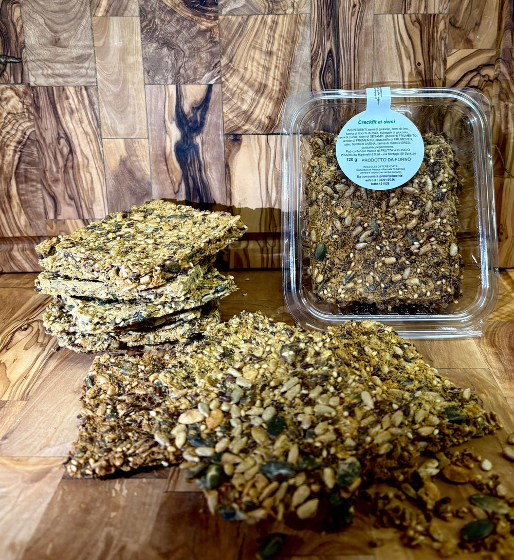 INGREDIENTI: semi di girasole, semi di lino, farina di fiocchi di mais, sciroppo di glucosio, semi di zucca, semi di SESAMO, glutine di FRUMENTO, amido di FRUMENTO, cruschello di FRUMENTO, sale, fiocchi di AVENA, farina di malto d'ORZO, curcuma, peperoncino.