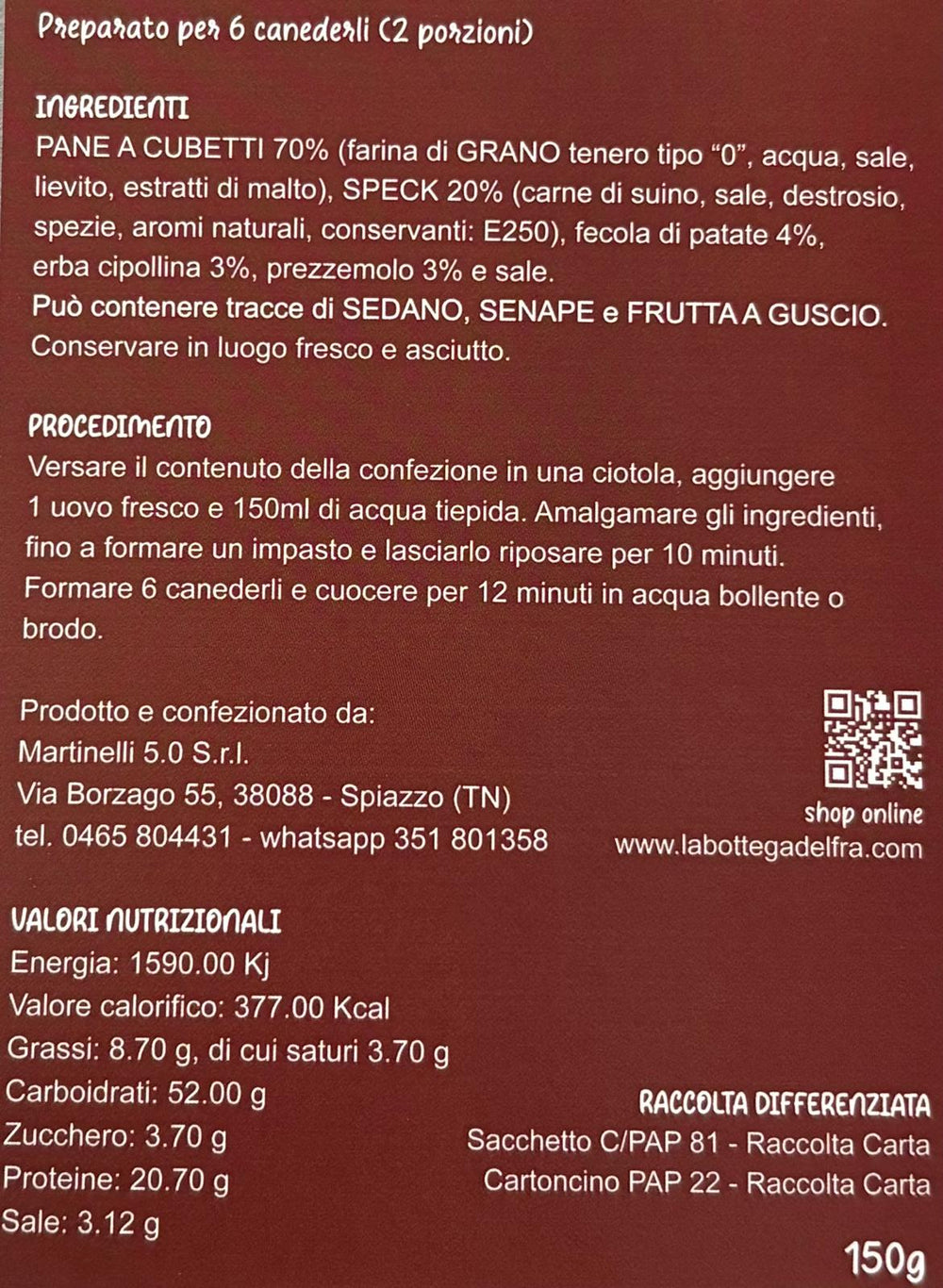 Preparato per Canederli allo Speck - 2 porzioni
